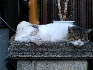 途中で気持ち良さそうに寝てるぬこさまを見かけたので写メ。